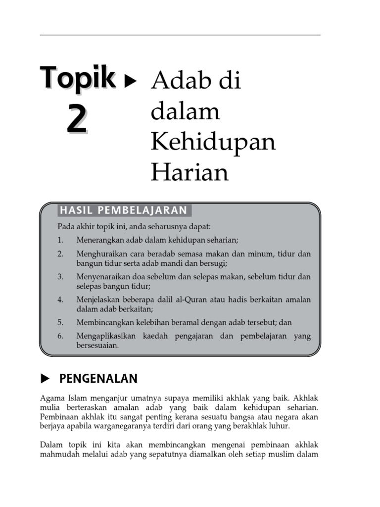 ADAB DALAM KEHIDUPAN SEHARIAN MENGIKUT PELBAGAI KAUMHNH3182 PENGHAYATAN ETIKA DAN PERADABANUNIVERSITI PENDIDIKAN. Merangkum dari buku Pendidikan Agama Islam Akidah dan Akhlak kelas X karya Thoyib Sah Saputra dan Wahyudin berikut adab. Pengertian Adab dan Contoh Adab dalam Kehidupan Sehari-hari.